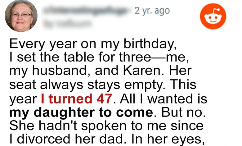 That night, after blowing out her candles in tears, the mother found herself flipping through old photo albums, aching for the bond they once shared.