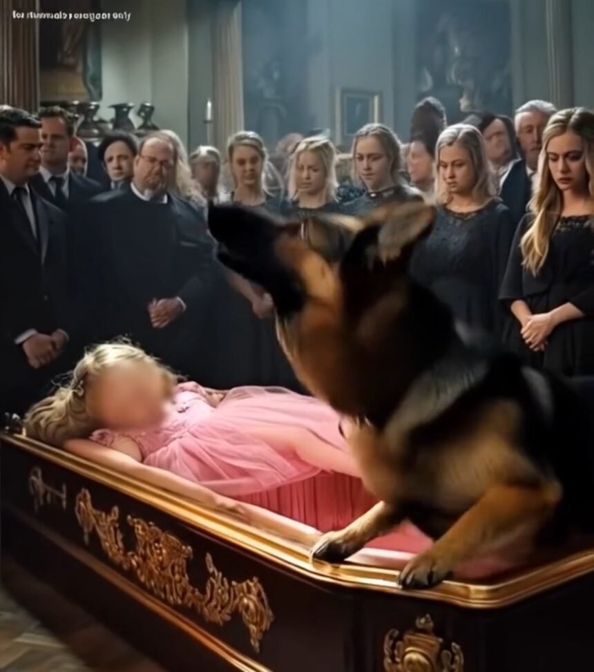 She rushed toward the coffin, leapt onto it, and stood tight, as if guarding something unseen. Her eyes were not full of panic, but with fierce guardianship.