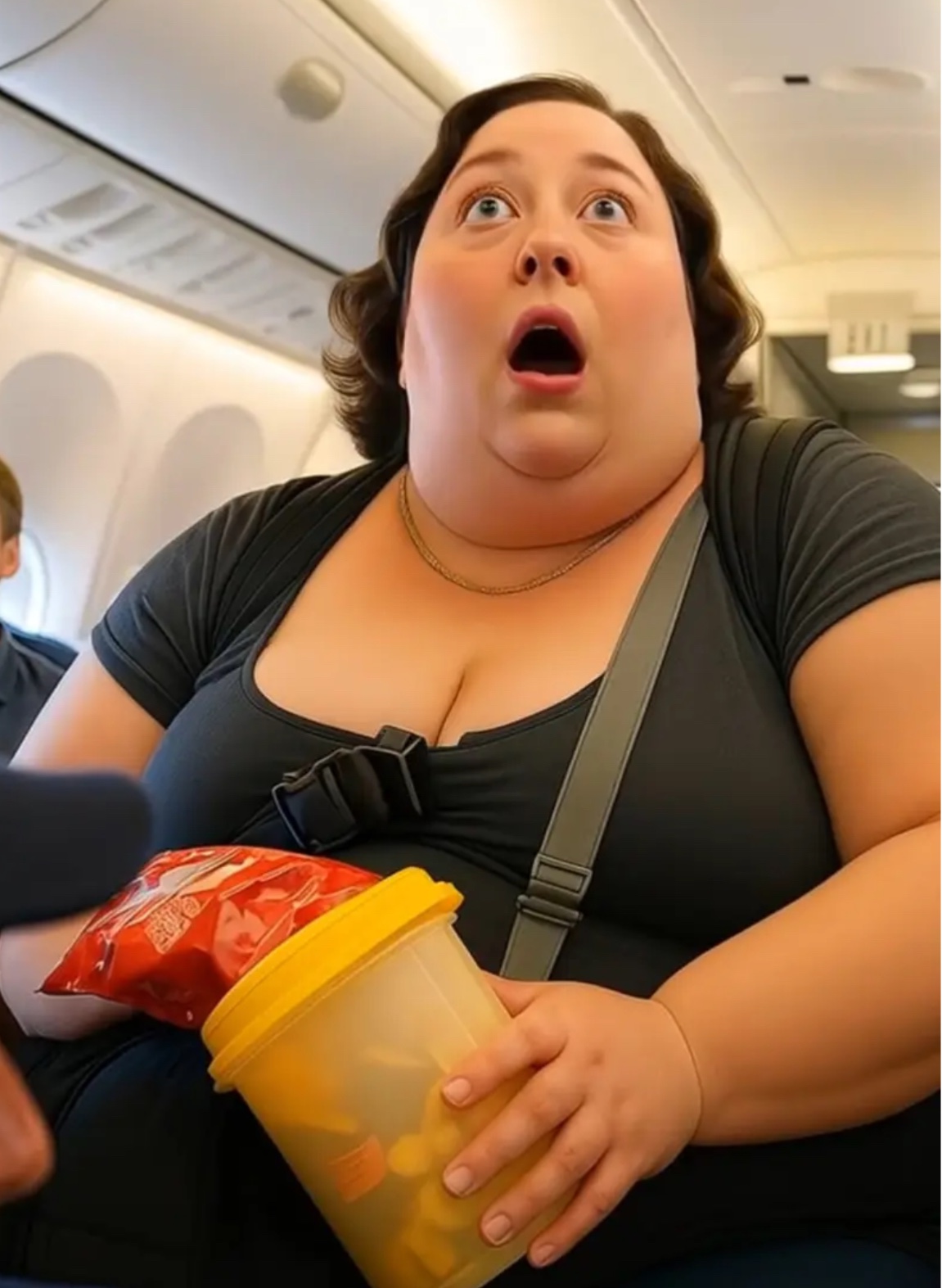 Several passengers on the plane exchanged critical glances. However, the flight attendant chose to remain silent… for the time being.