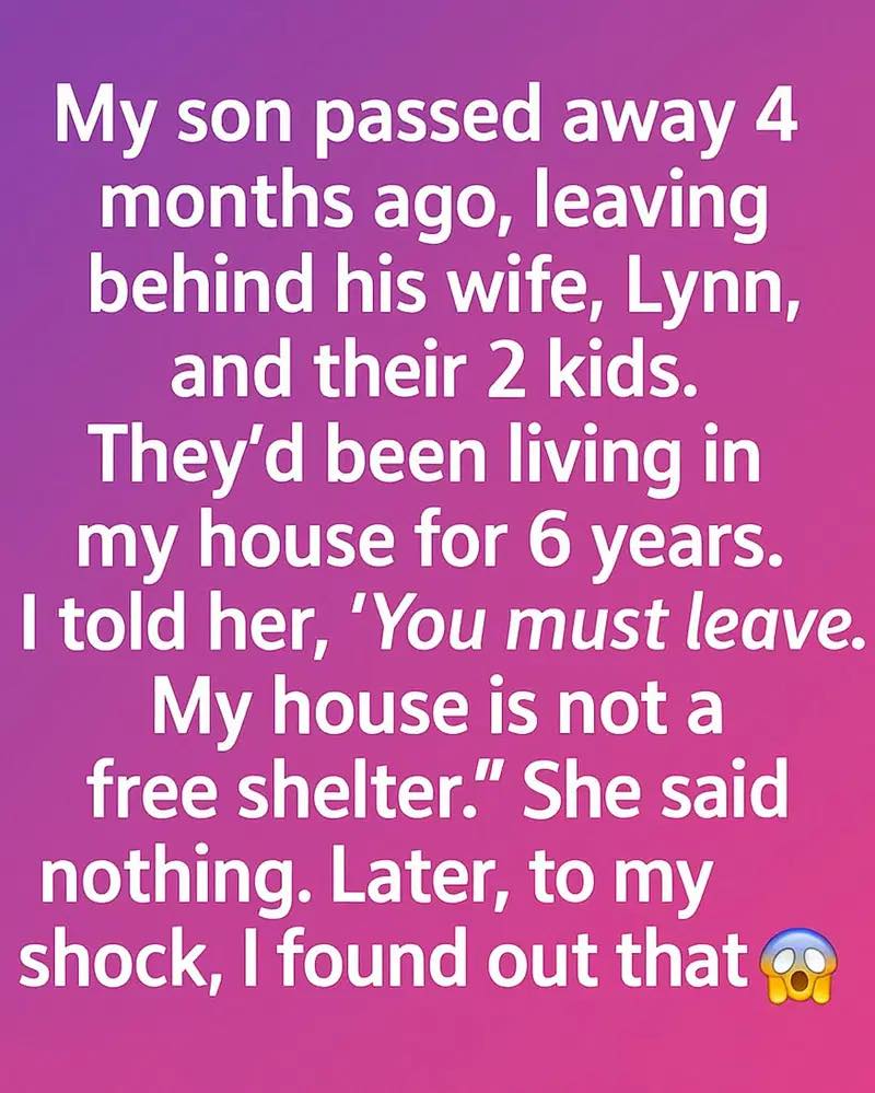 They had been living in my house for six years. When he was alive, it never felt like a burden—my home was their home. But after his passing, my grief twisted into frustration. I felt the silence of the house, the reminders of him everywhere, and one day I snapped. I told Lynn, “You must leave. My house is not a free shelter.” She said nothing. No argument, no anger just silence. She gathered her children close, her face pale but calm. In that moment, I mistook her quiet for indifference, when in truth, she was carrying a pain far greater than mine.