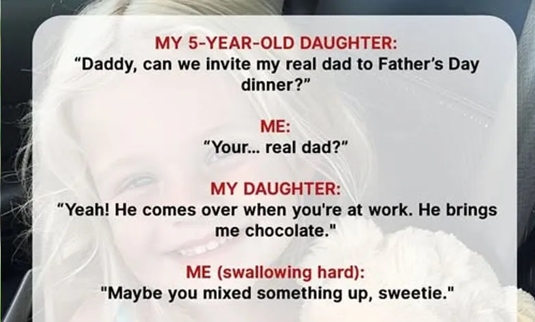 could invite her “real dad” to dinner. Shocked, I gently pressed for more. She explained that he visits when I’m at work—playing tea party and having dinner—with my wife Jess. She even said, “You know him.” That hit like a punch to the chest.