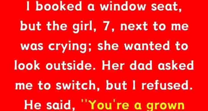 I booked a window seat, but the 7 y.o. girl next to me was crying; she wanted to look outside. Her dad asked me to switch, but I refused. He said, “You’re a grown woman but still very immature.” The girl kept shouting the whole flight.