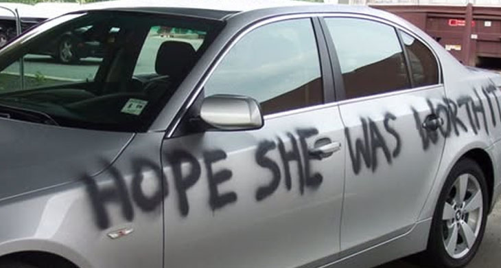 they never expected their joy to be shattered just moments later. But there it was—four chilling words spray-painted across his car: Hope She Was Worth It. The accusation hit like a bullet. Emily’s grip on his hand loosened, her trust shaken by the silent scream of betrayal etched in black,