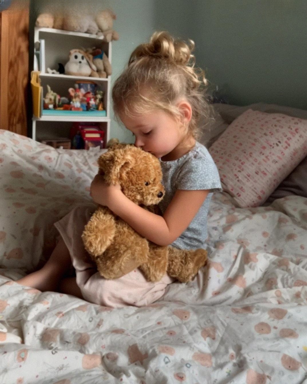 She fiddled with Teddy’s paw and whispered, “Daddy told kindergarten I was sick. But… I wasn’t. Daddy took me places.”
