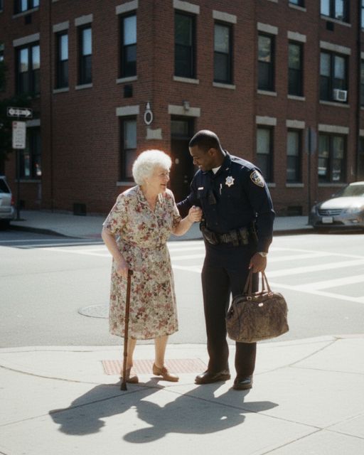 I was on my lunch break, patrolling my usual route, when I saw her—frail, cane in hand, hesitating at the crosswalk. Without thinking twice, I offered my arm and walked her across, steady and slow, like I’ve done for so many others before. She thanked me sweetly, but as we reached the other side, she paused, looked me straight in the eye, and said, “You still wrinkle your nose when you’re confused, just like when you were little.”