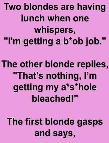Her friend raised her eyebrows, momentarily startled, then leaned in as well, whispering back with a mischievous grin. “Oh, that’s nothing!” she exclaimed. “I’m getting my arsehole bleached!”