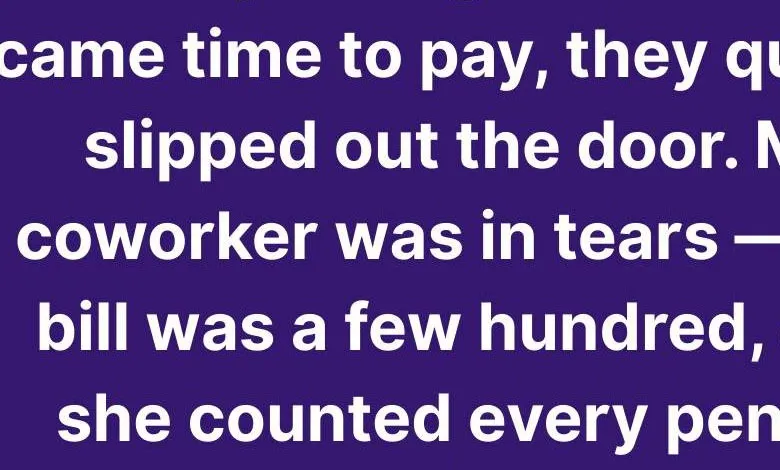 Mia, my coworker, froze as she stared at the bill—several hundred dollars. Her eyes glistened with tears.