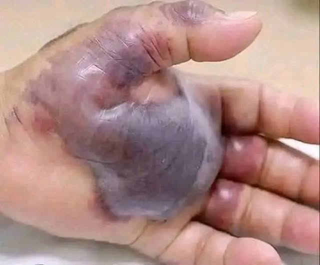 He was admitted to a hospital in Jeonju with a blood blister measuring 3.5–4.5 cm on the palm of his left hand, along with severe swelling on the back of the hand and forearm.