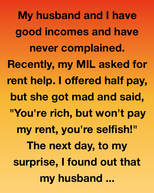 We’d always been steady—two salaries, modest house, savings intact—so when my mother-in-law called about rent, I offered half without hesitation.