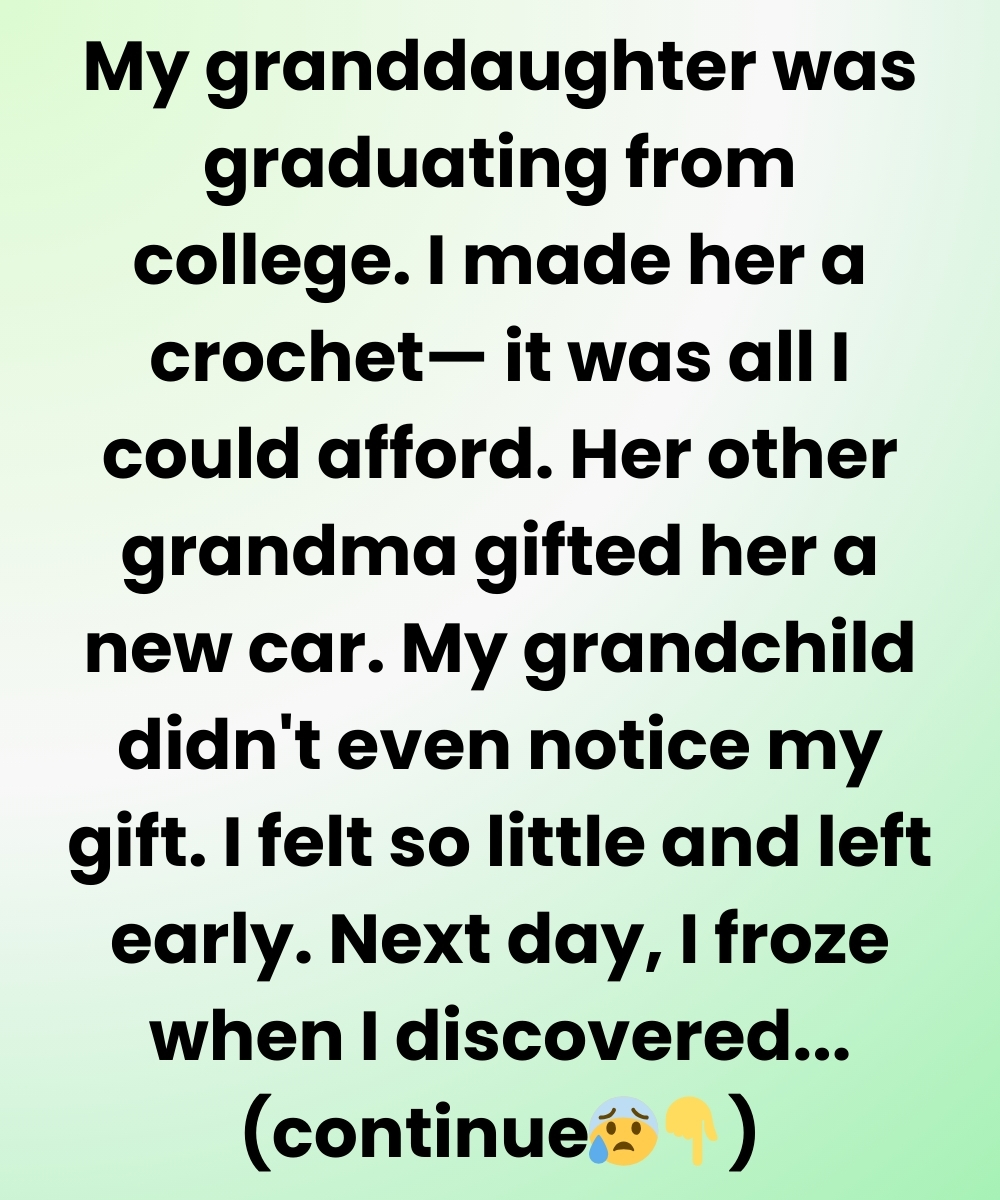 of yarn tied to family memories. At her party, however, my handmade gift was overshadowed by her other grandmother’s grand gesture: a car wrapped in a bow. Leilani thanked me politely but set my package aside, and I left unnoticed, aching with quiet disappointment.