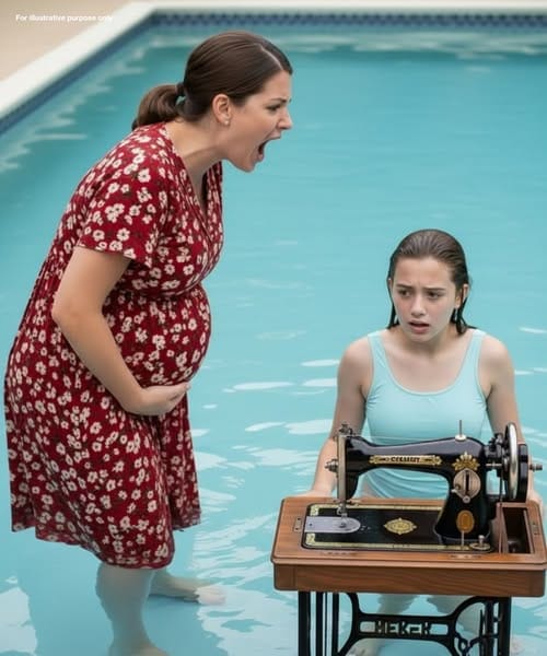Lily dropped to her knees beside the pool, reaching helplessly toward the water as her sewing machine disappeared beneath the surface. It had taken her six months to save for it — babysitting, selling handmade tote bags online, cutting every corner she could. That machine was her dream, her escape.
