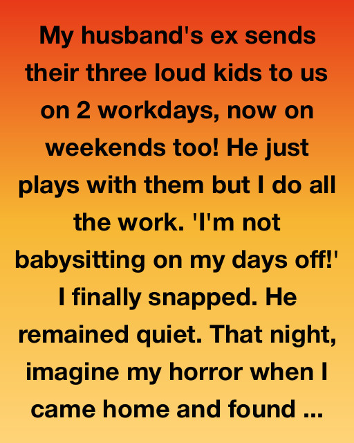 He just plays with them but I do all the work. ‘I’m not babysitting on my days off!’ I finally snapped. He remained quiet. That night, imagine my horror when I came home and found the kids had unpacked ALL their things — toothbrushes, clothes, even their school stuff. They weren’t visiting anymore. They were moving in.