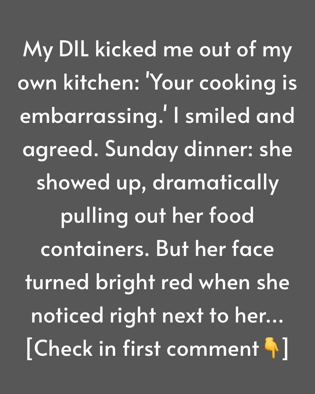 My DIL always criticizes me. One day, she even kicked me out of my own kitchen: “Your cooking is embarrassing.” I smiled and agreed.