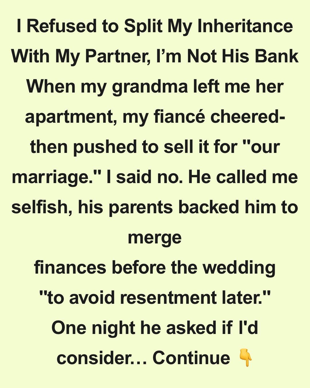 This story comes from one of our readers. She found herself in a tricky situation when her partner expected her to share the inheritance she had received from her family.