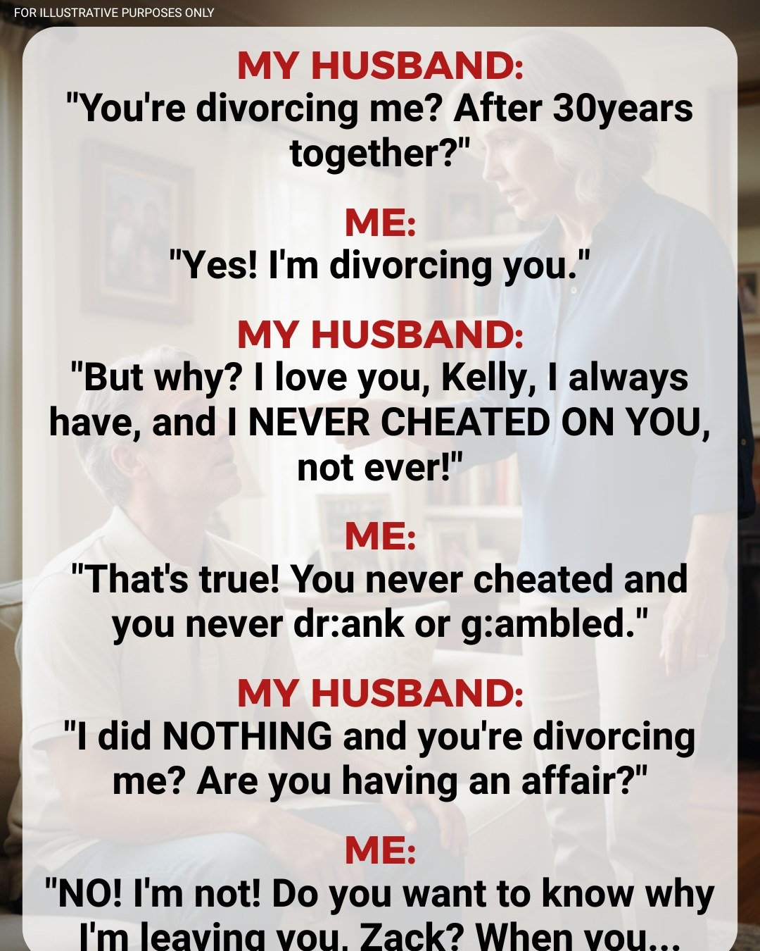 “But… then why?” he asked angrily. “I did nothing, and you’re divorcing me? Are you having an affair?”