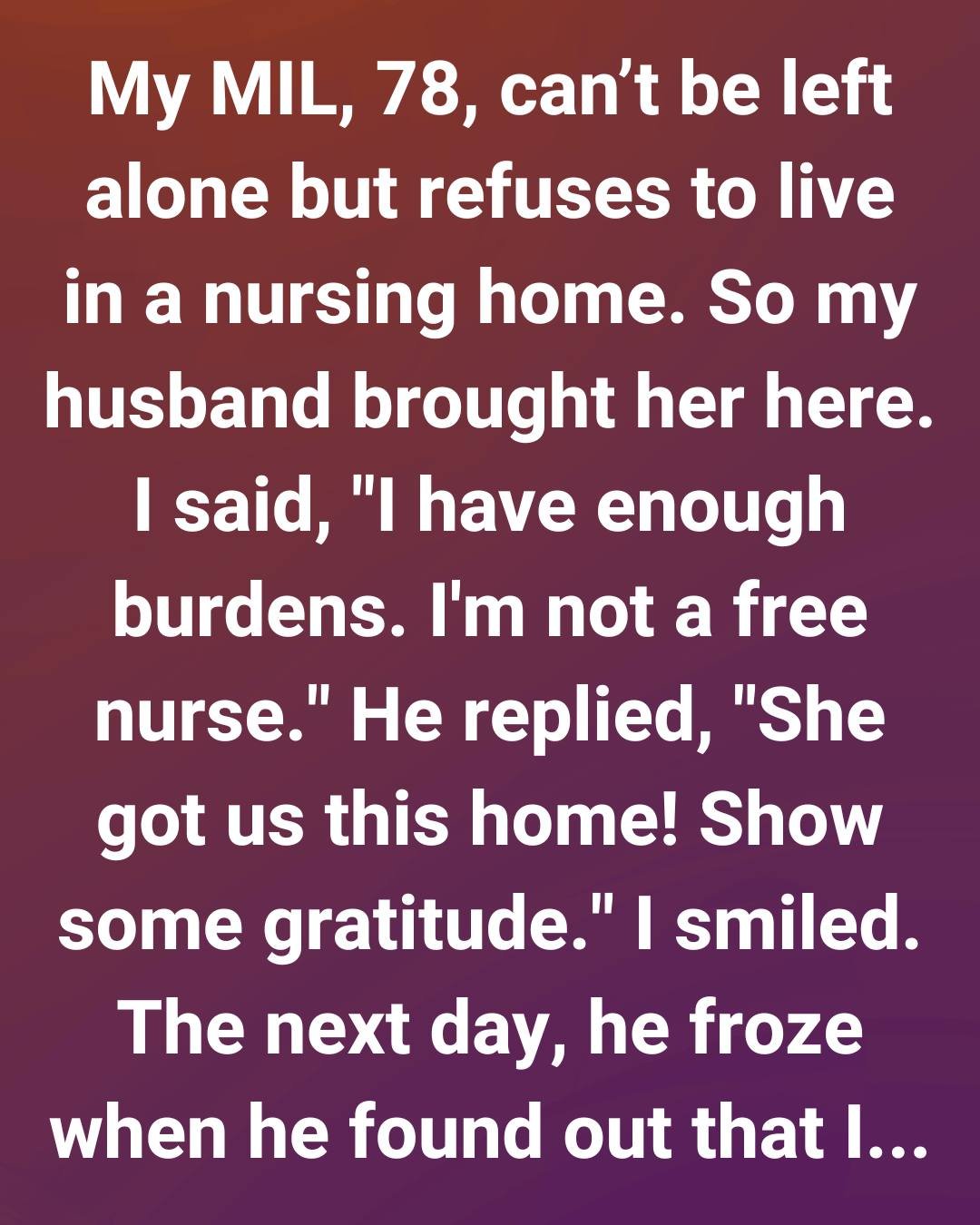 Her memory is slipping, and her health has been declining. Without even consulting me, my husband decided to bring her to live with us.
