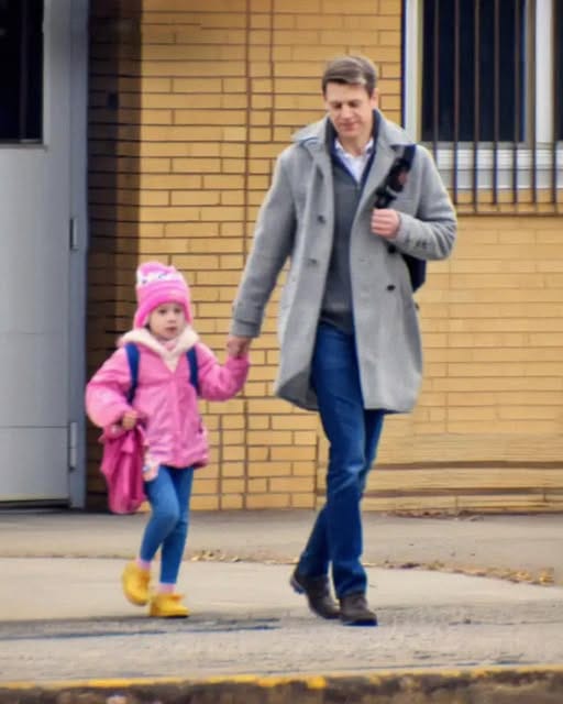 Then she tilted her head and said, “Daddy, why didn’t the new daddy pick me up like he usually does?”