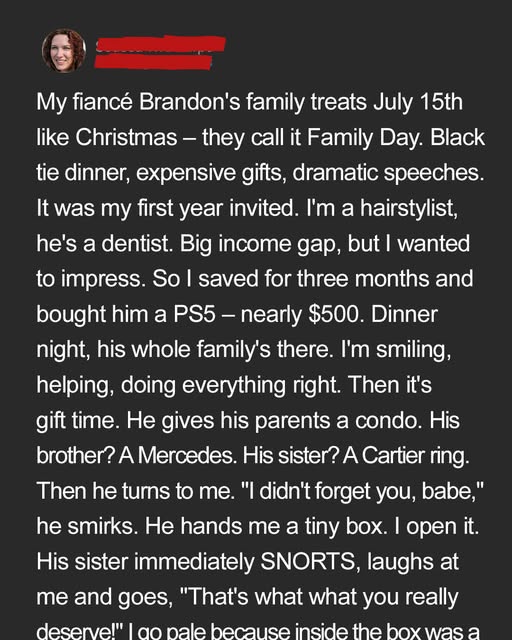 They go all out, so I spent months saving for Brandon’s dream gift. But when gift-giving time came, Brandon handed me a tiny box… and a public humiliation I never saw coming.