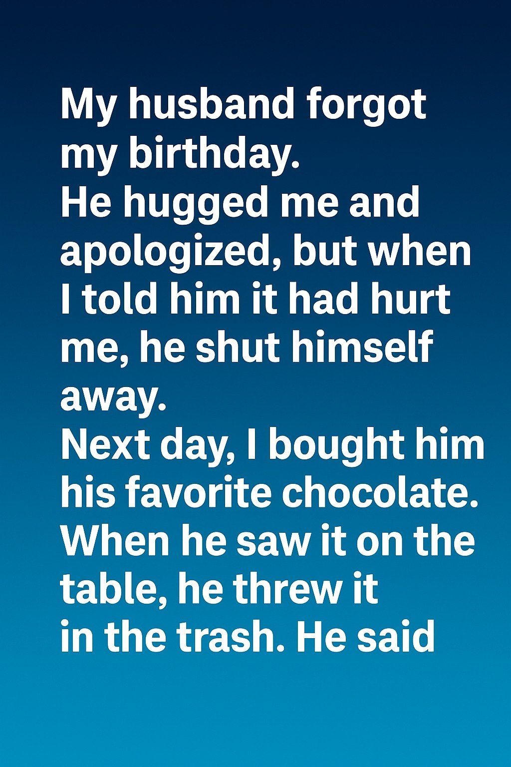 The next day, I bought him his favorite chocolate. When he saw it on the table, he threw it in the trash.