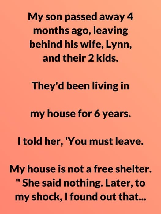 He left behind his wife, Lynn, and their two little ones — all of whom had lived under my roof for the past six years. The house that once overflowed with laughter, tiny footsteps, and the everyday chaos of family suddenly felt unbearably still. Every room carried a memory. Every corner reminded me of what I’d lost.
