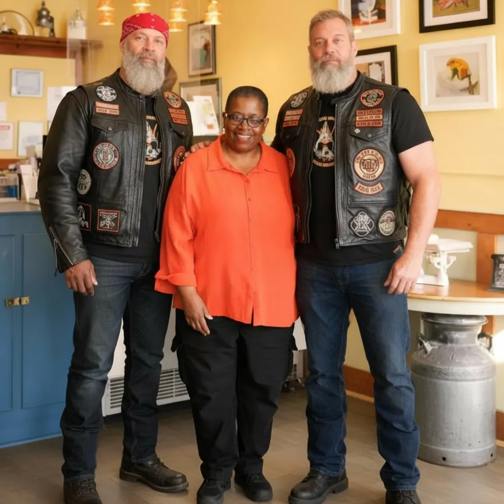 Eight months later, I carried a cake in Grace’s favorite colors into the Iron Brotherhood clubhouse. Forty bikers stood in silence as I set it down. Thomas whispered that helping small business owners like me had given his pain a purpose—and that Grace’s dream now lived inside every act of kindness they offered. As I looked around that room filled with men society called dangerous, I saw only angels—rough-edged, battle-scarred, but angels all the same. I used to believe the night they walked into my bakery would be the night everything ended. I was wrong. It was the night everything began.