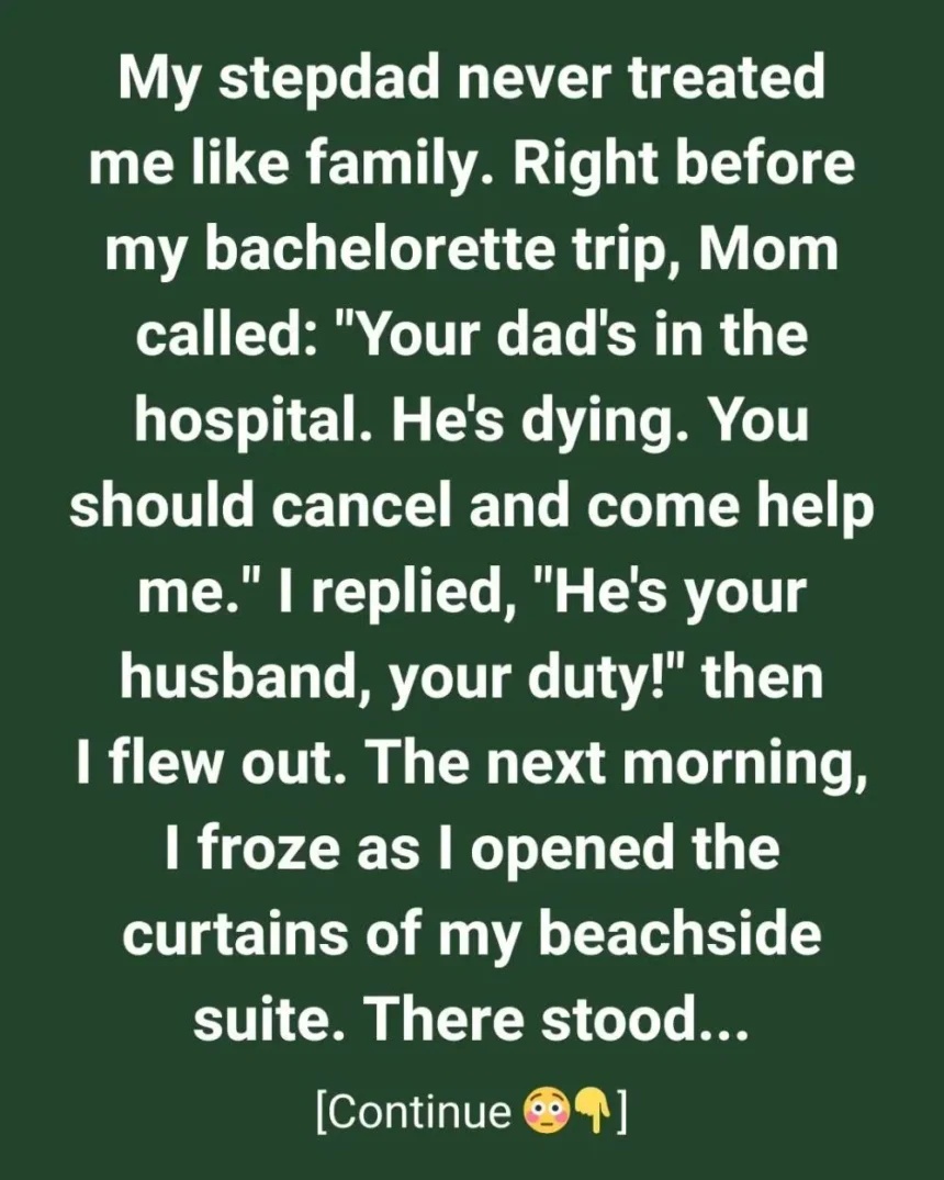 My stepdad never treated me like family. Right before my bachelorette trip, Mom called: “Your father’s in the hospital. He’s dying.
