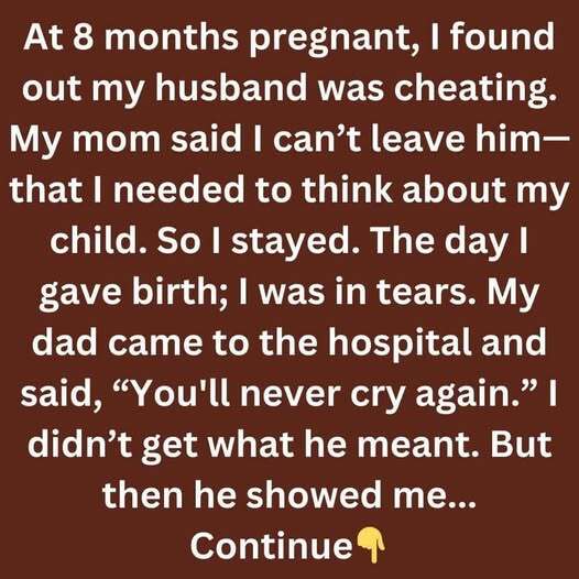 Then her father arrived quietly, offering comfort without judgment. He held her as she cried out the pain of the past weeks, then placed a key in her hand. He had rented an apartment, fully prepared for her and the baby, and contacted a lawyer so she could leave safely. In that moment, she realized she wasn’t as alone as she thought.