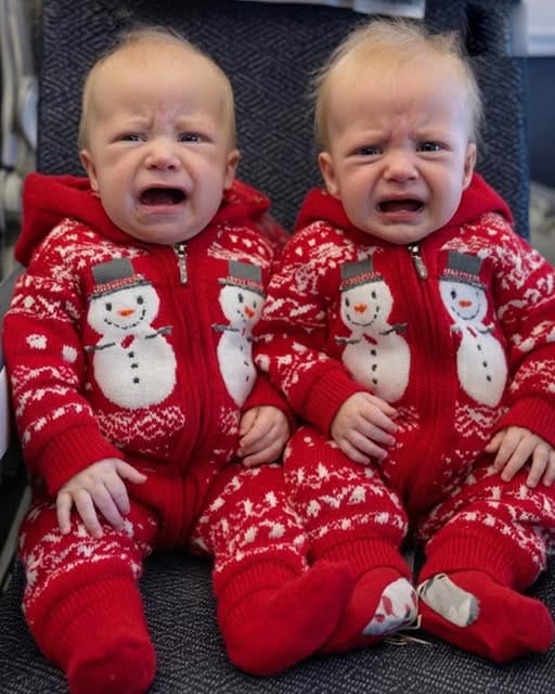 Two infants were sitting in the aisle seats, completely alone. A boy and a girl, maybe six months old, their faces red from crying and their tiny hands shaking.