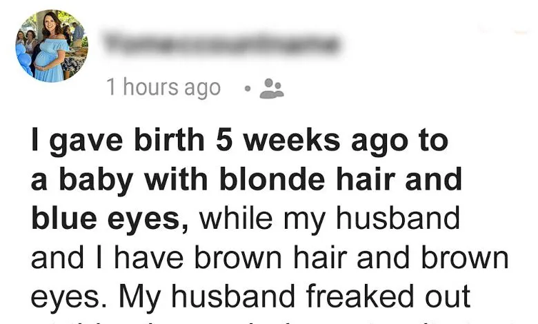 I gave birth 5 weeks ago to a baby with blonde hair and blue eyes, while my husband and