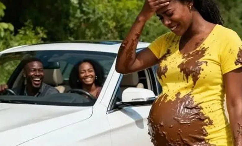 Before she could react, icy, filthy water crashed into her body, knocking the breath from her chest. In seconds, her pale blouse was soaked and stained a deep brown, spreading across her five-month-pregnant belly — the very place where a life was growing, a life doctors once told her would never exist.