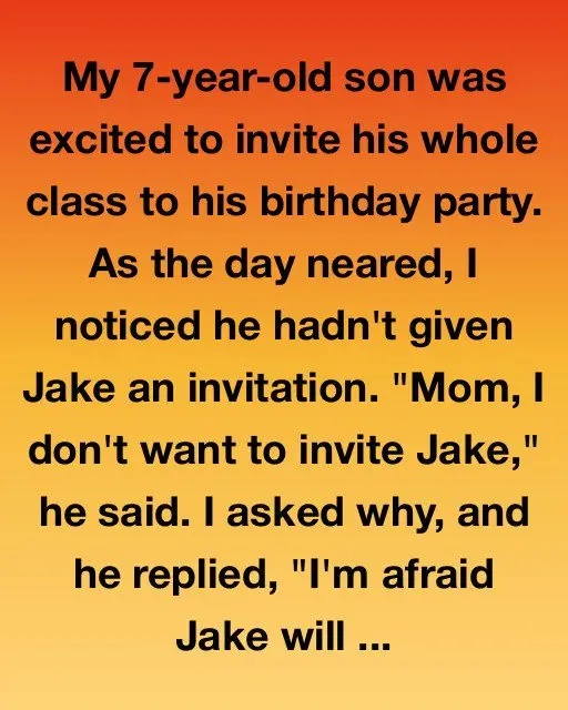 As the day neared, I noticed he hadn’t given Jake an invitation. “Mom, I don’t want to invite Jake,” he said.