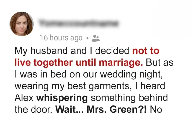 Alex and I had the perfect wedding day—beautiful weather, joyful guests, and heartfelt vows. By the time we reached our room that night, we were exhausted but happy. As I got ready for bed, I heard Alex whispering to his mom outside the door. Confused, I stayed quiet, wondering why she was still there on our wedding night.