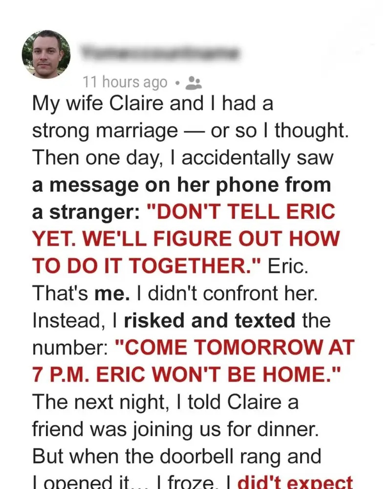 My wife Claire and I had a strong marriage—or so I thought. Then one day, I accidentally saw a message on her