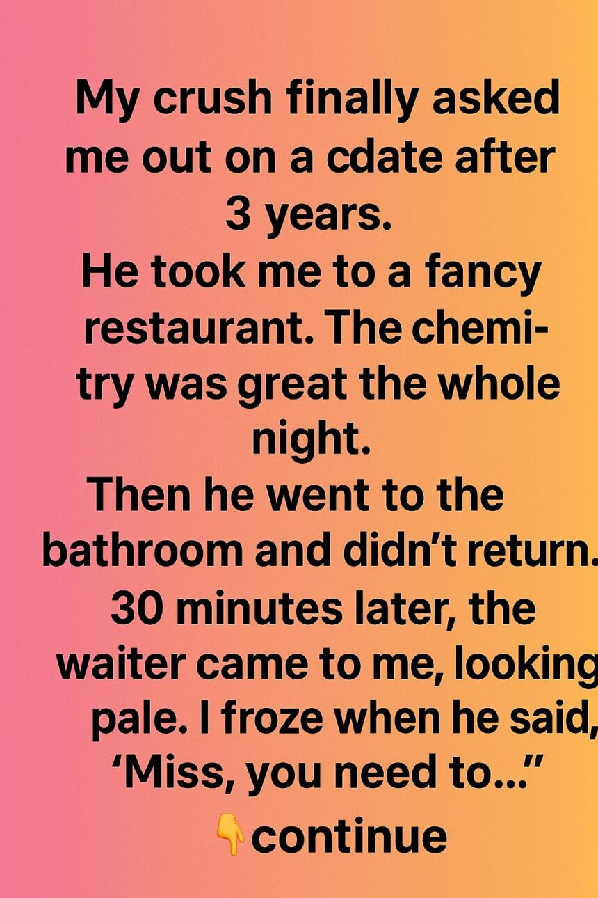 At thirty, I felt my stomach knot. Just as I was about to text him, a waiter approached, his face pale and voice trembling. “Miss, you need to come with me,” he said softly.