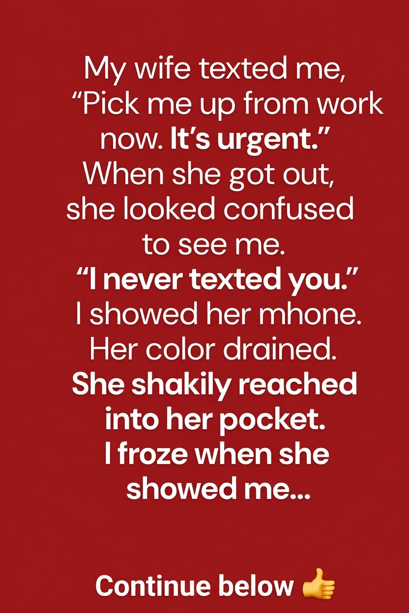 My wife texted me, “Pick me up from work now. It’s urgent.”I rushed over without hesitation. When she got into the car, she looked