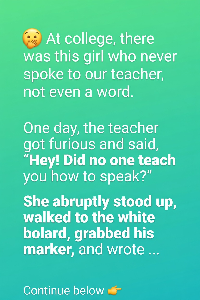 Without hesitation, she stood up, walked calmly to the whiteboard, took the teacher’s marker, and began to write. “I lost my voice in an accident two years ago,” she wrote in neat, steady letters.