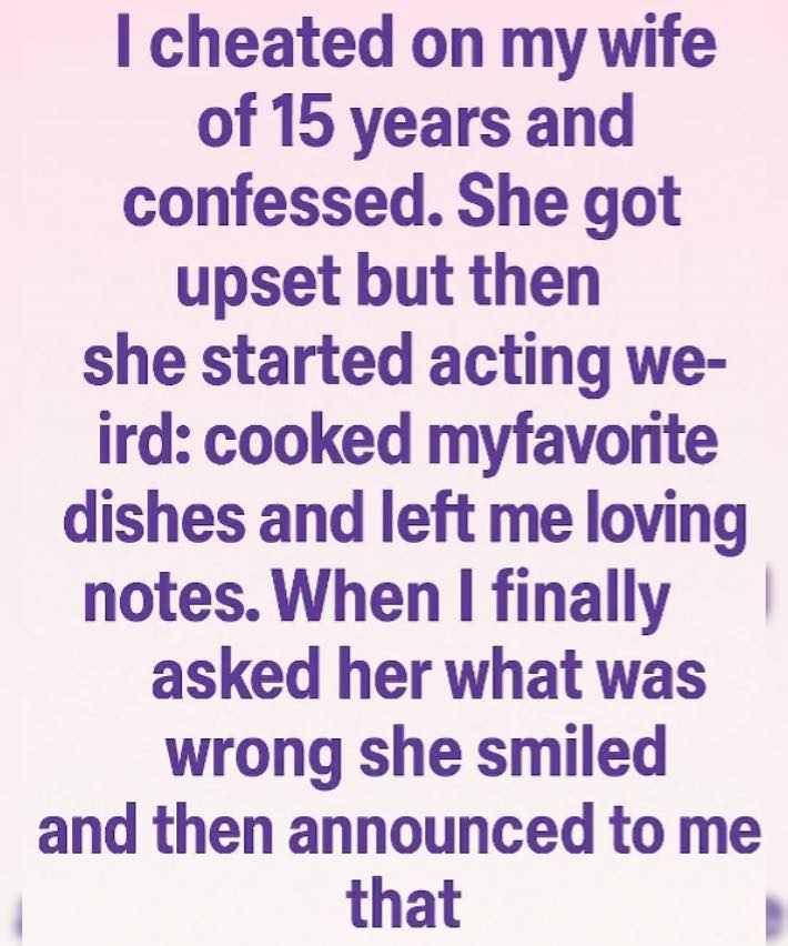 In the days that followed, she started making my favorite meals again. She left small notes around the house with words like “still” and “always.” She smiled at me in a way that felt almost unbearable, because I knew I didn’t deserve it.
