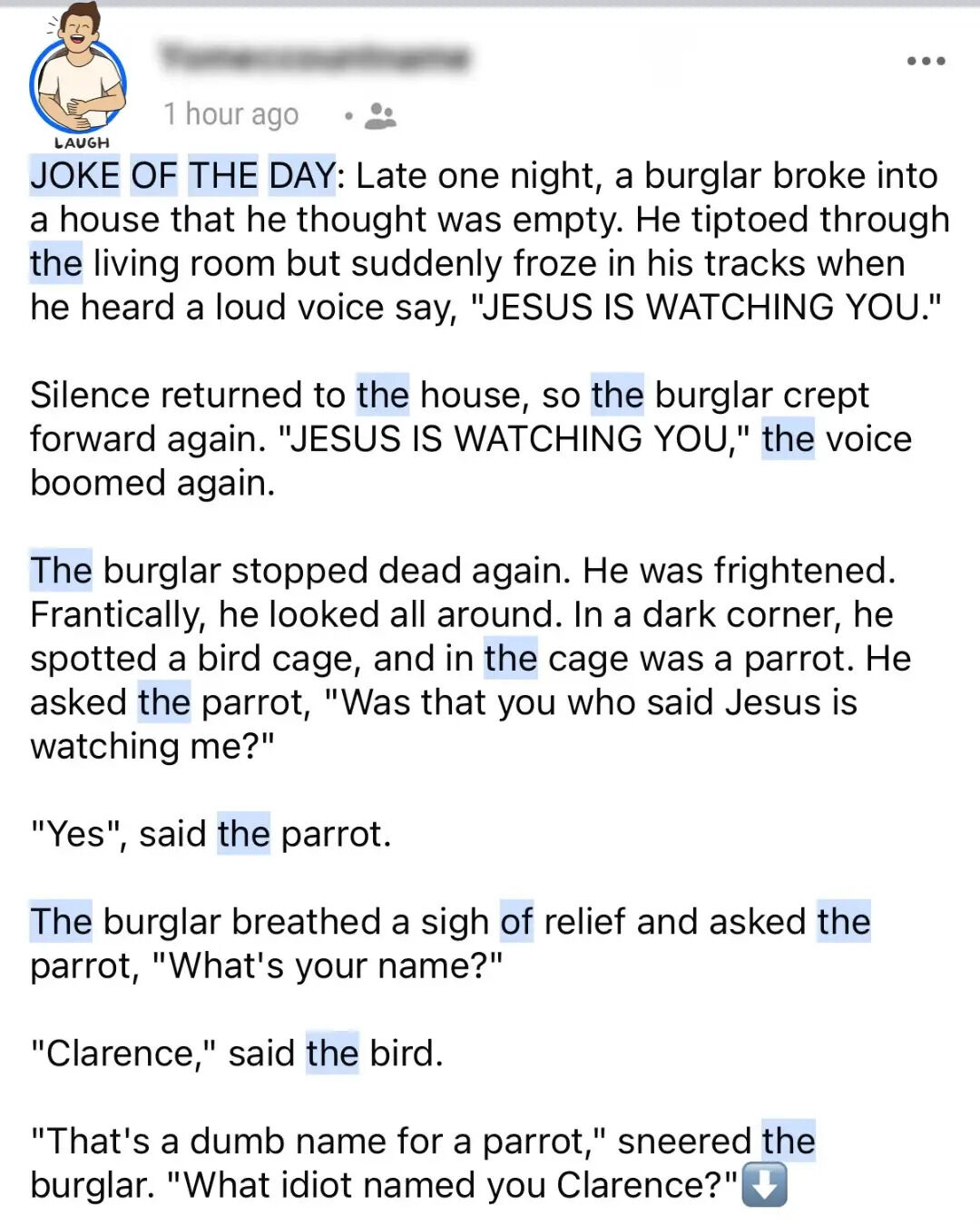 So sit back, relax, and enjoy a collection of humor that’s as diverse as it is hilarious. Late one night, a burglar broke into a house. As he tiptoed through the living room, a booming voice stopped him in his tracks: “Jesus is watching you!”