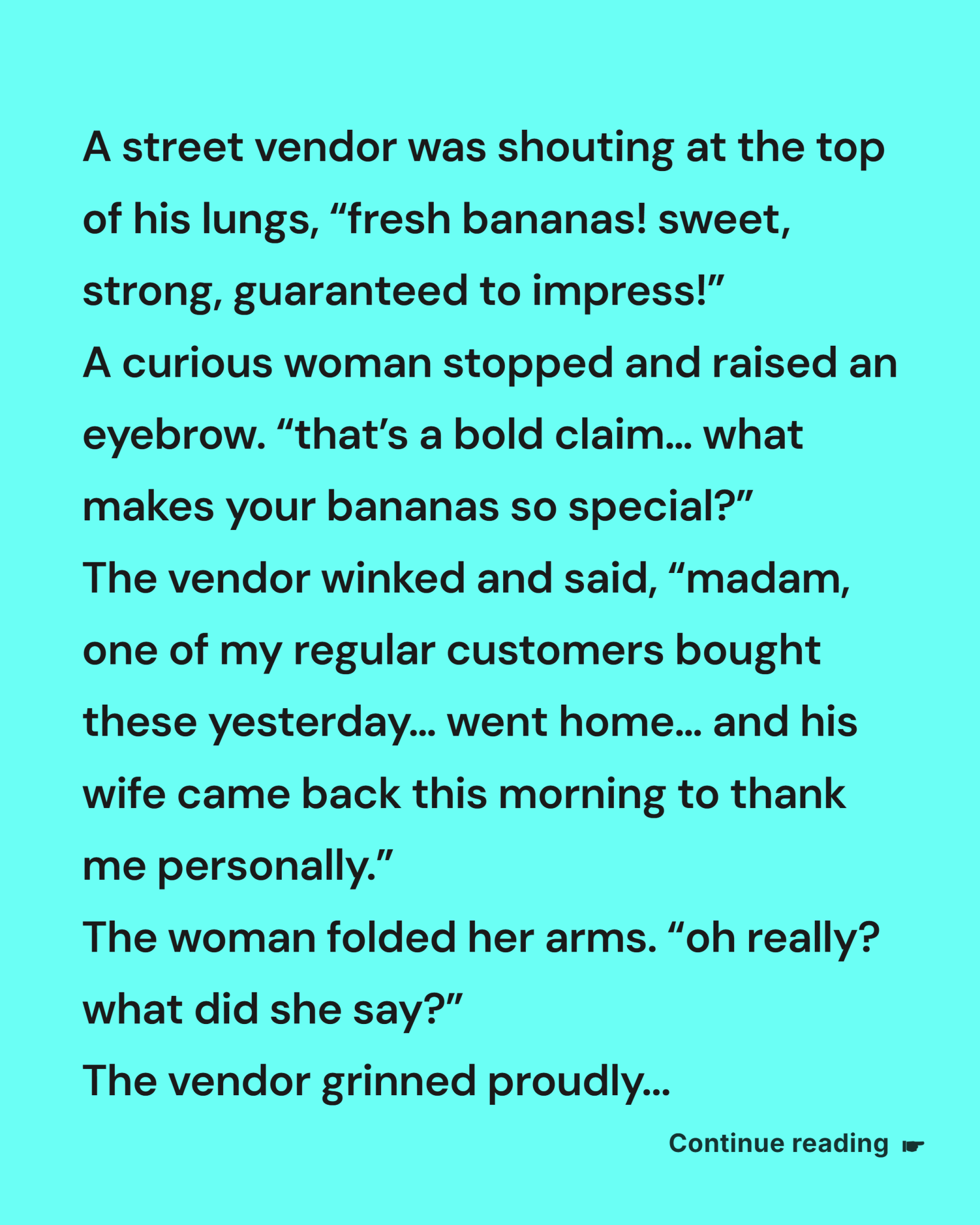“fresh bananas! sweet, strong, guaranteed to impress!”