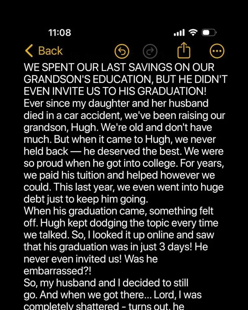 As Hugh’s graduation day approached, they excitedly prepared to see him walk across the stage. However, when the day neared, they realized he hadn’t invited them or even mentioned the event.