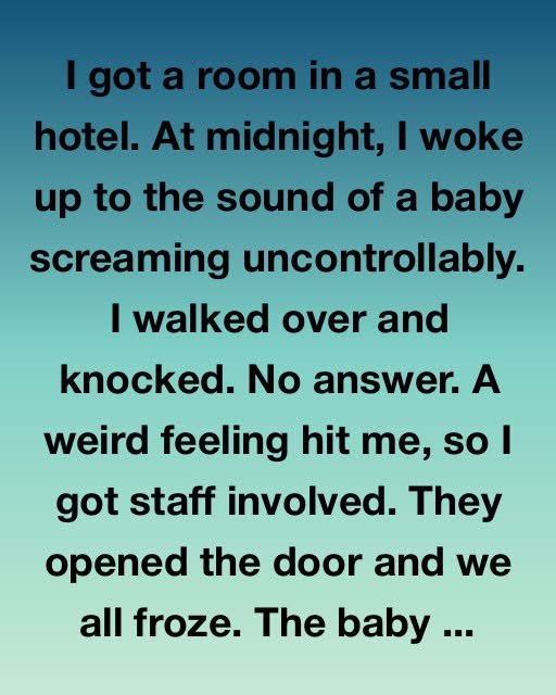 screams coming from the room next door. When no one answered the door, a hotel worker unlocked it—and inside was a crying infant alone in a crib, with no belongings and no record of anyone staying there. The moment I picked him up, he stopped crying, as if he’d been waiting to be found.