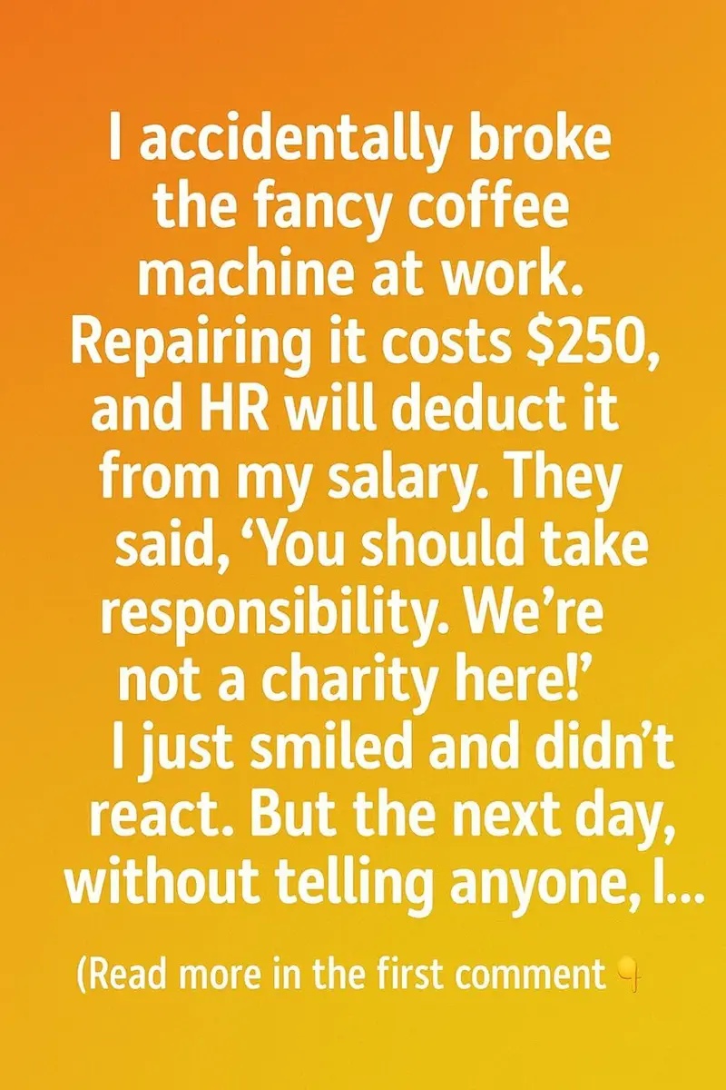 I accidentally broke the fancy coffee machine at work, and HR immediately informed me they would deduct the $250 repair