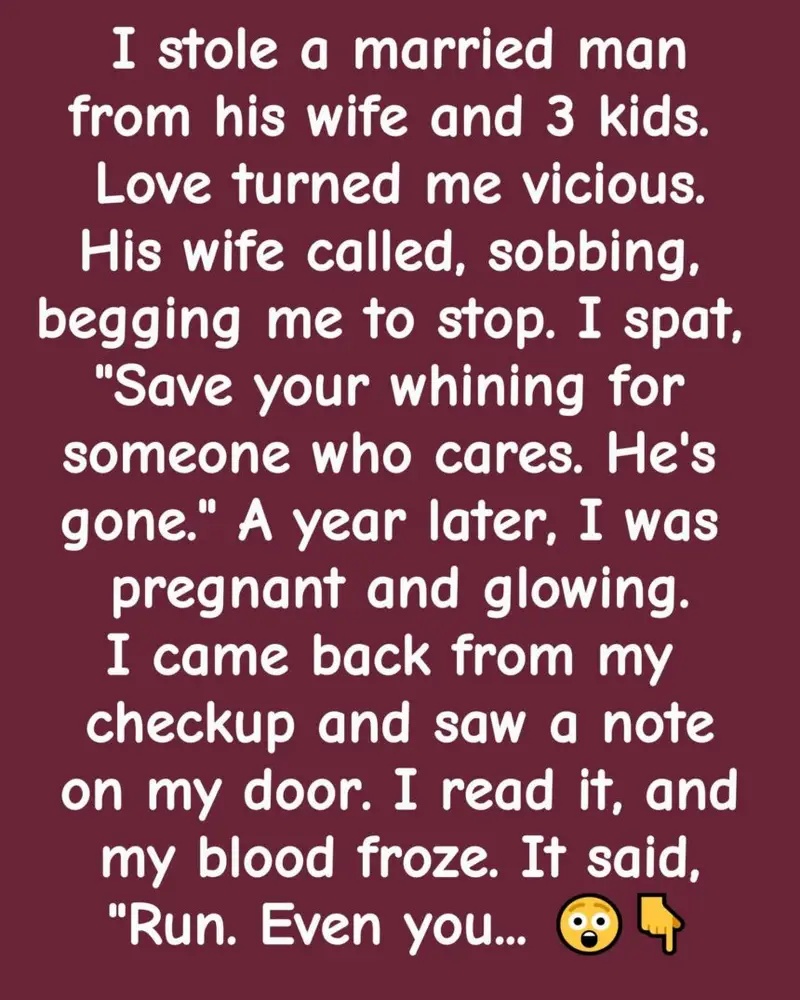 “I thought you took my whole life when you stole my husband. Turns out you just took the trash out of my house. You need to know who he is. Don’t end up like me. Take everything you can and leave. He won’t change.”