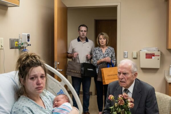 As my grandfather walked in after I gave birth, his first words were, “My dear, wasn’t the 250,000 I sent you every month enough? My heart stopped. “Grandpa… what money?” I whispered. At that exact moment, my husband and mother-in-law burst in with arms full of luxury bags—and froze. Their faces drained of color. That’s when I realized something was terribly wrong…