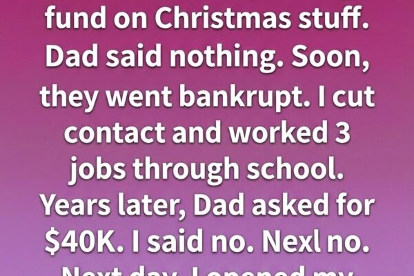 For as long as I could remember, money meant uncertainty.   Every year, while I carefully planned for college and dreamed about a future built on independence, my stepmother treated my education fund like a holiday expense account. Thousands disappeared into decorations, gifts, and celebrations that looked impressive from the outside but left nothing lasting…
