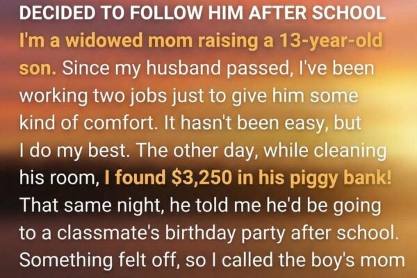 The moment I noticed the weight of my son’s piggy bank felt heavier than it should, a quiet sense of concern settled in.   I wasn’t angry or suspicious at first—just confused. Life had been demanding since my husband passed away, and raising a 13-year-old alone meant constantly balancing work, parenting, and worry. Finding several…