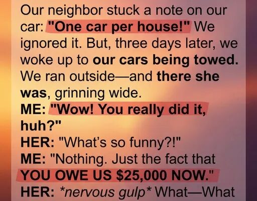 The Morning Our Neighbor Had Our Cars Towed From Our Own Driveway And How Her Need For Control Ended In..