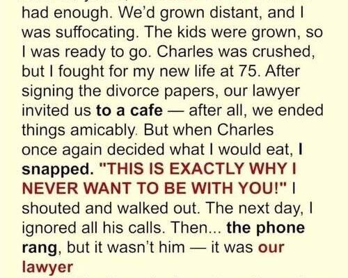 After fifty years of marriage, Margaret finally gathered the courage to do what she had only imagined in whispers — she filed for divorce. There had been no affair, no dramatic betrayal, only the quiet suffocation of years spent shrinking inside a life that no longer felt like hers. Charles accepted the news with a…