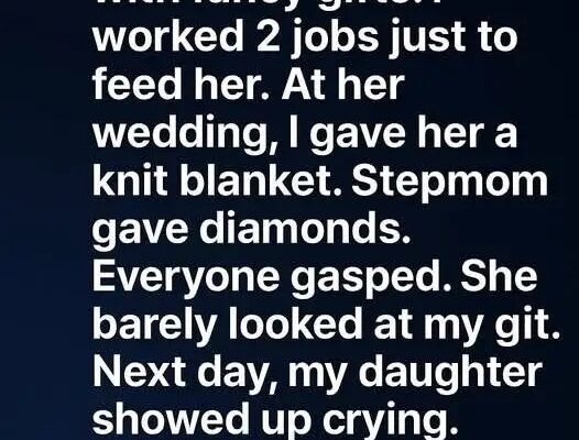My ex’s new wife always bought my daughter expensive gifts — the latest phone, designer clothes, fancy jewelry. I worked two jobs just to keep food on the table, but I never complained. Love, not luxury, was what I wanted my child to remember. When my daughter got married, I spent months knitting a…