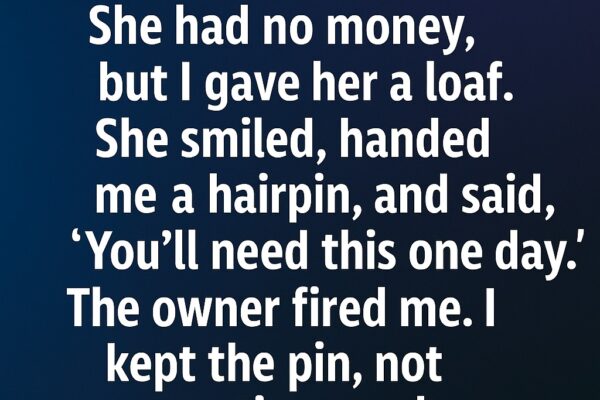 A pregnant woman begged for bread in our bakery. She had no money, but I gave her a loaf. She smiled, handed me a hairpin,   and said, “You’ll need this one day.” The owner fired me. I kept the pin, not expecting much. 6 weeks later, my blood ran cold when I found… a…